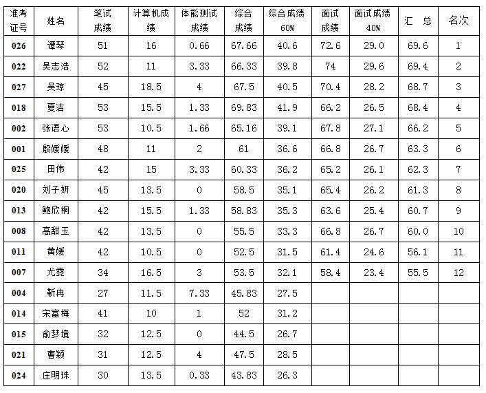 泰州消防救援支隊(duì)2021年公開招聘文員 人員筆試面試成績(jī)及總成績(jī)公告