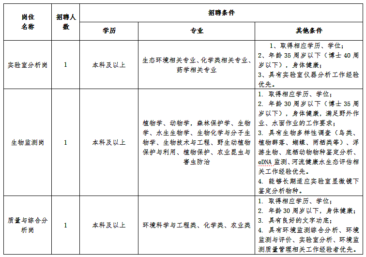 江蘇省泰州環(huán)境監(jiān)測中心為全額撥款事業(yè)單位,隸屬于江蘇省生態(tài)環(huán)境廳,是從事生態(tài)環(huán)境監(jiān)測和科研,為環(huán)境管理和社會經(jīng)濟服務(wù)的環(huán)境監(jiān)測機構(gòu)。根據(jù)工作需要,現(xiàn)面向社會招聘3名工作人員,派遣至江蘇省泰州環(huán)境監(jiān)測中心從事與環(huán)境監(jiān)測相關(guān)工作。具體要求如下: